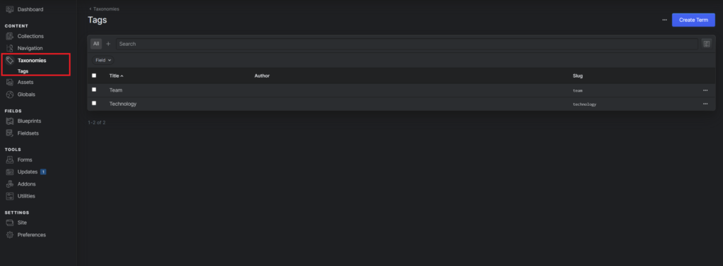 Taxonomies consist of terms, and entries can be assigned one or more terms.